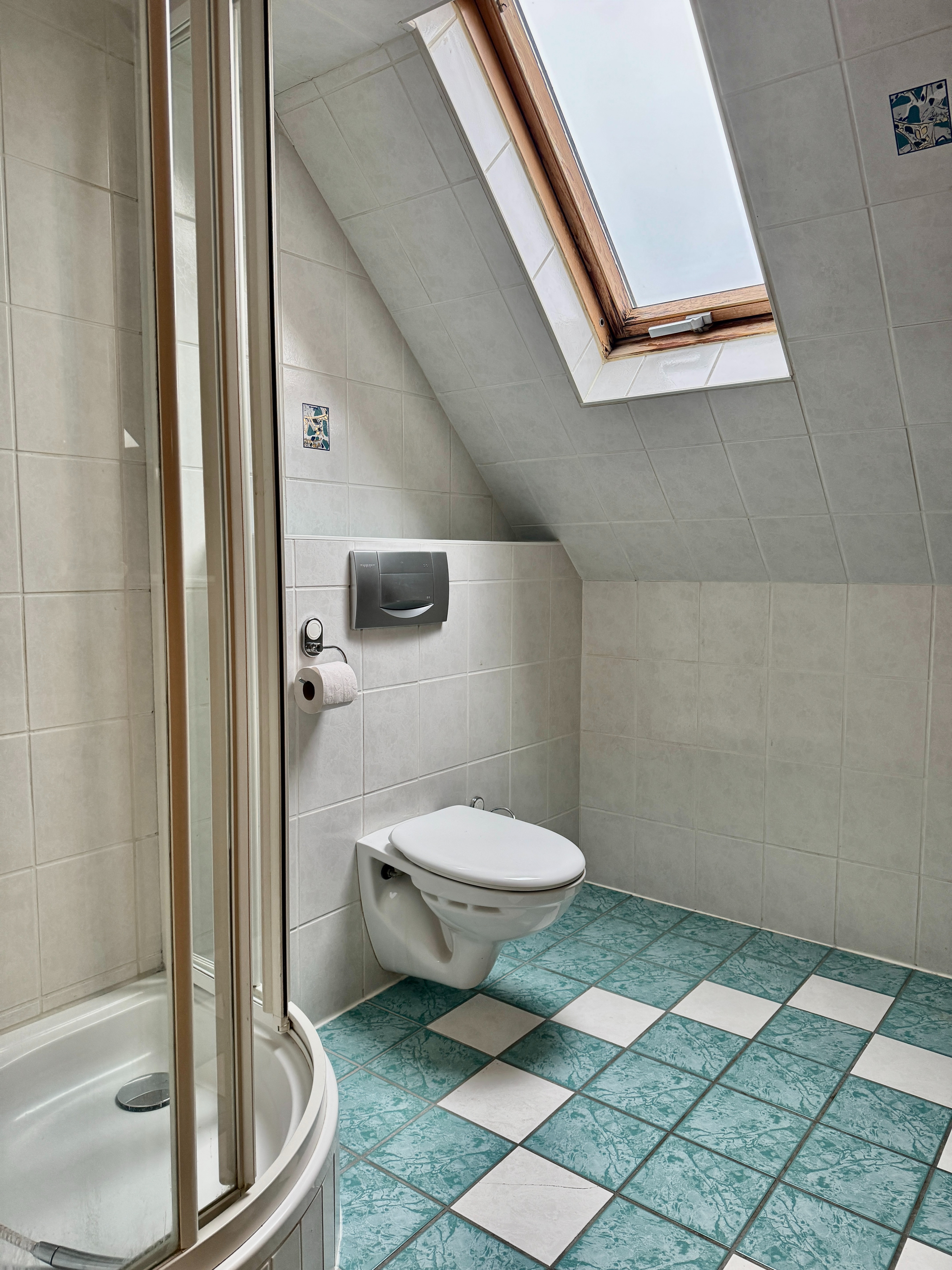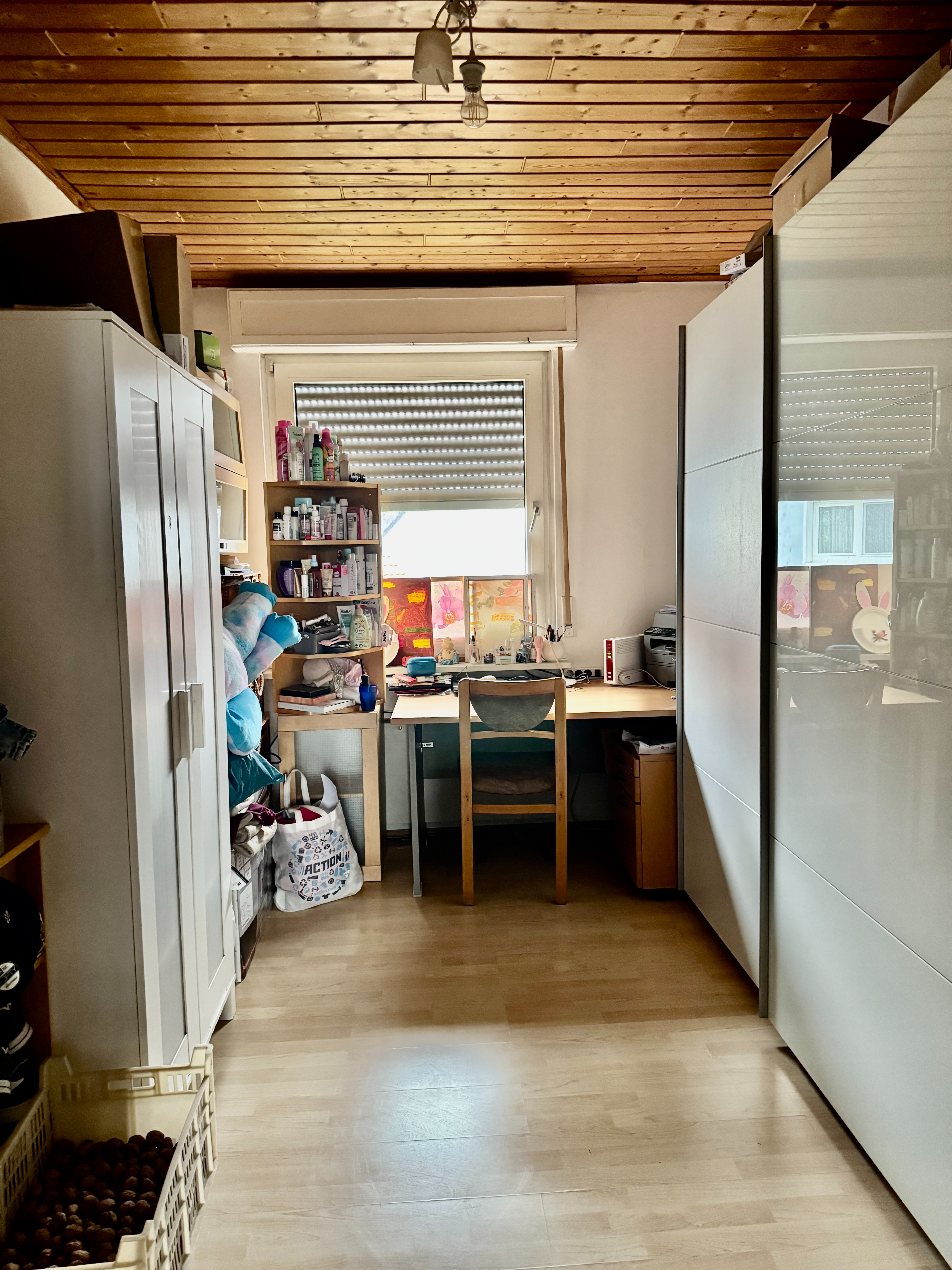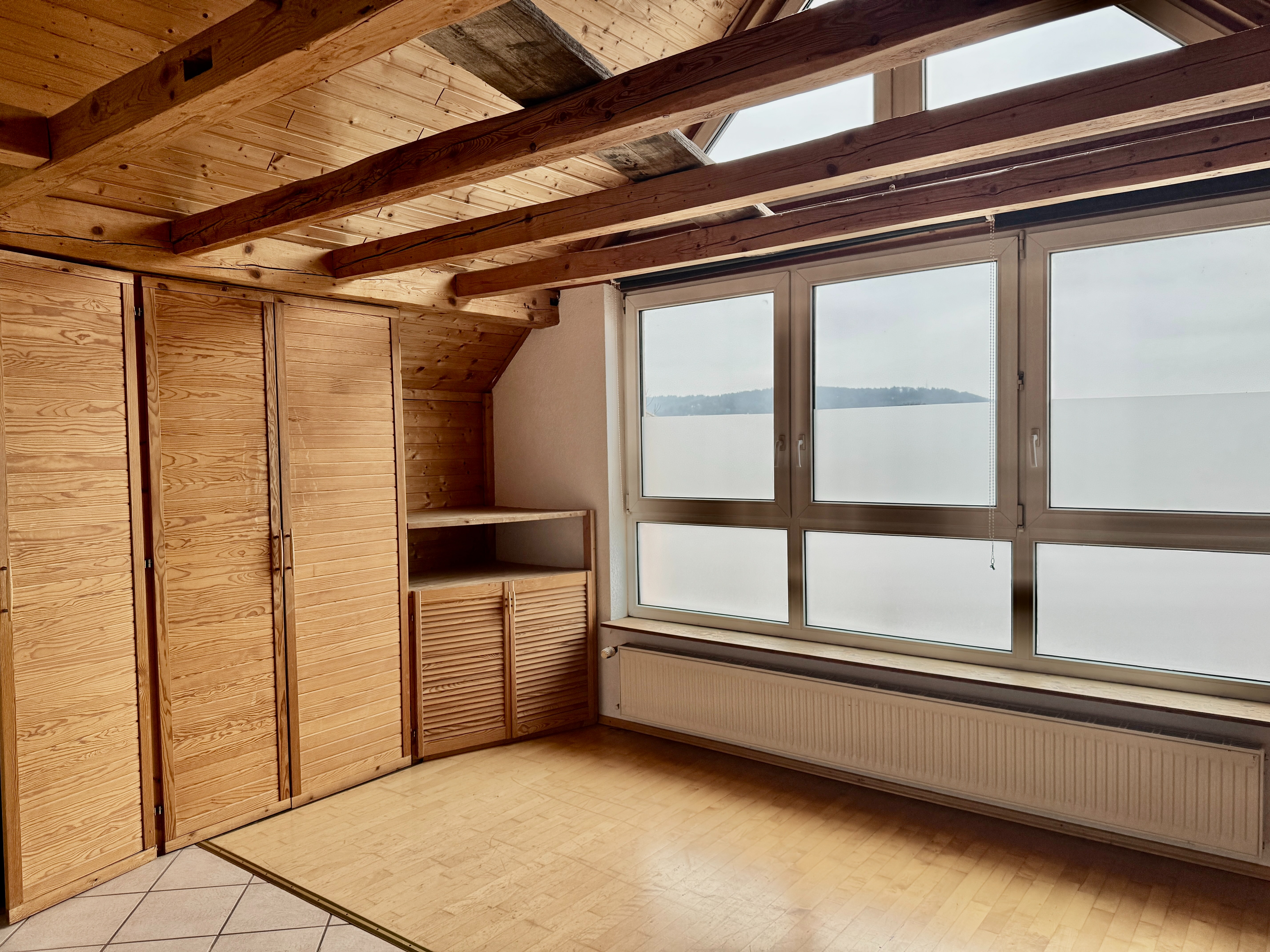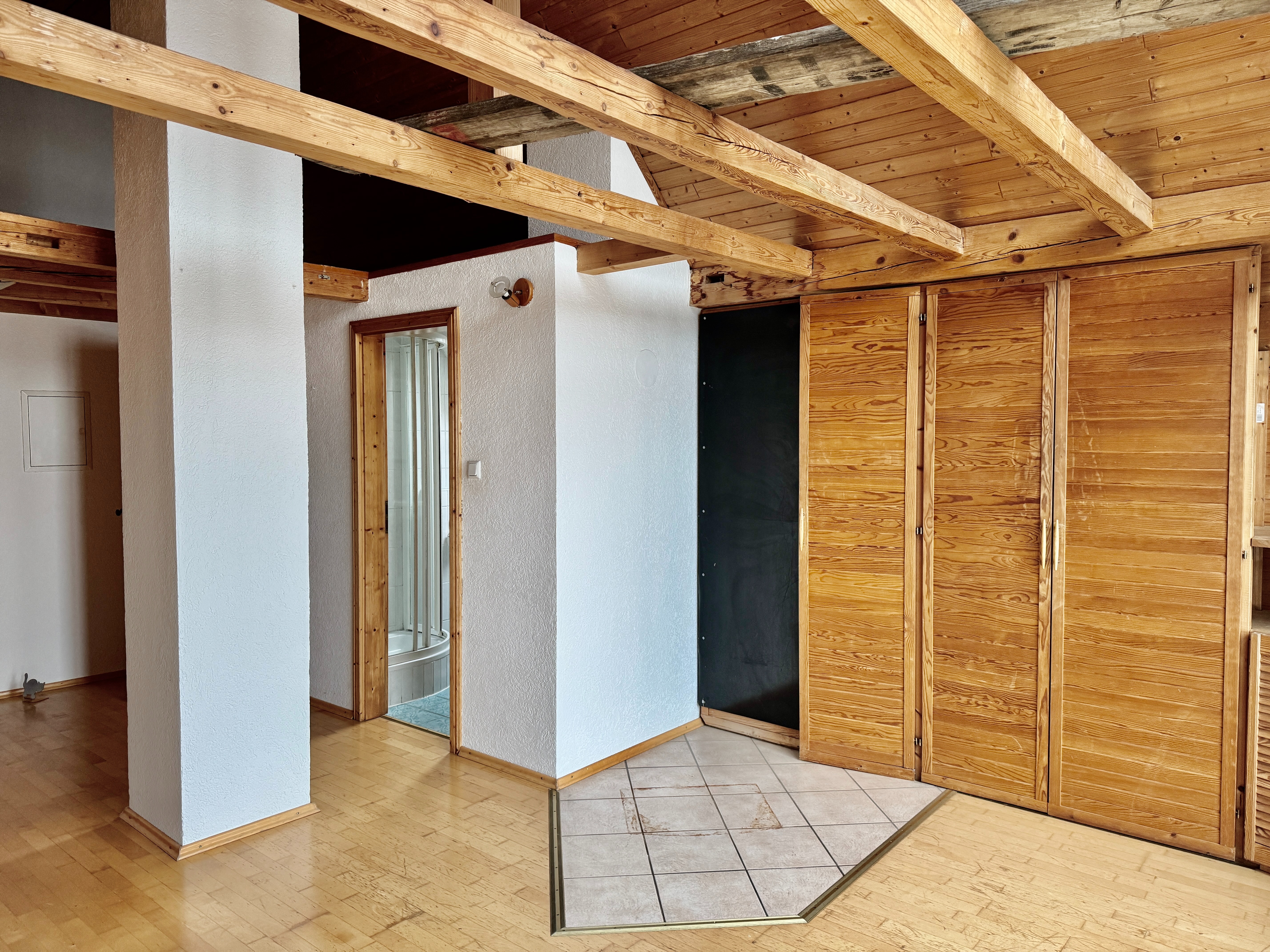 Und dann kommt das i-Tüpfelchen: das ausgebaute Dachstudio (Ausbau 2012). Hier oben entsteht sofort dieses Gefühl von „mein Bereich“ – ein Ort für Teenager, Gäste, Arbeiten, Kreativität oder einfach ein großes Zimmer zum Leben. Das Studio verfügt über ein großes Fenster und sogar über ein eigenes Duschbad – eine echte Aufwertung, die das Haus spürbar erweitert.