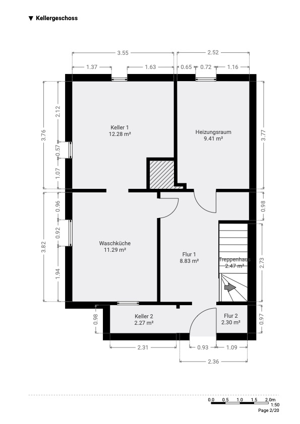 Die Immobilie ist voll unterkellert. Sämtliche Nutzräume, die Heizung und der Waschmaschinenanschluss befinden sich im Untergeschoss des Hauses und bieten ausreichend Stauraum.