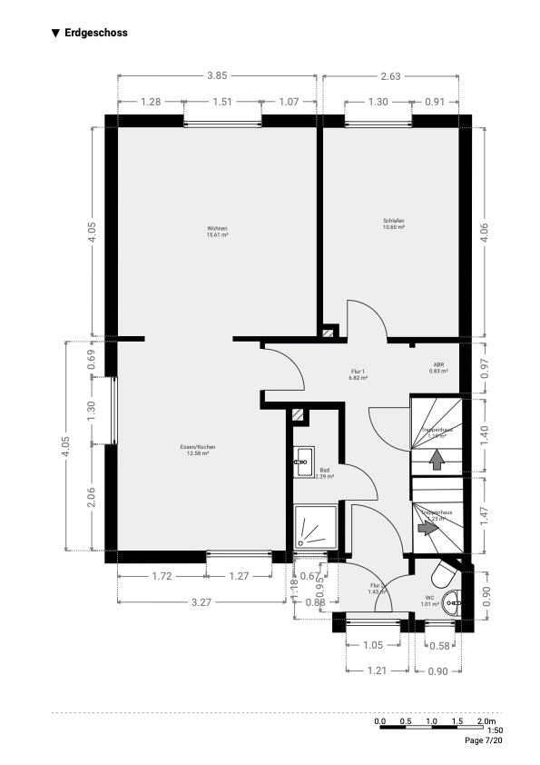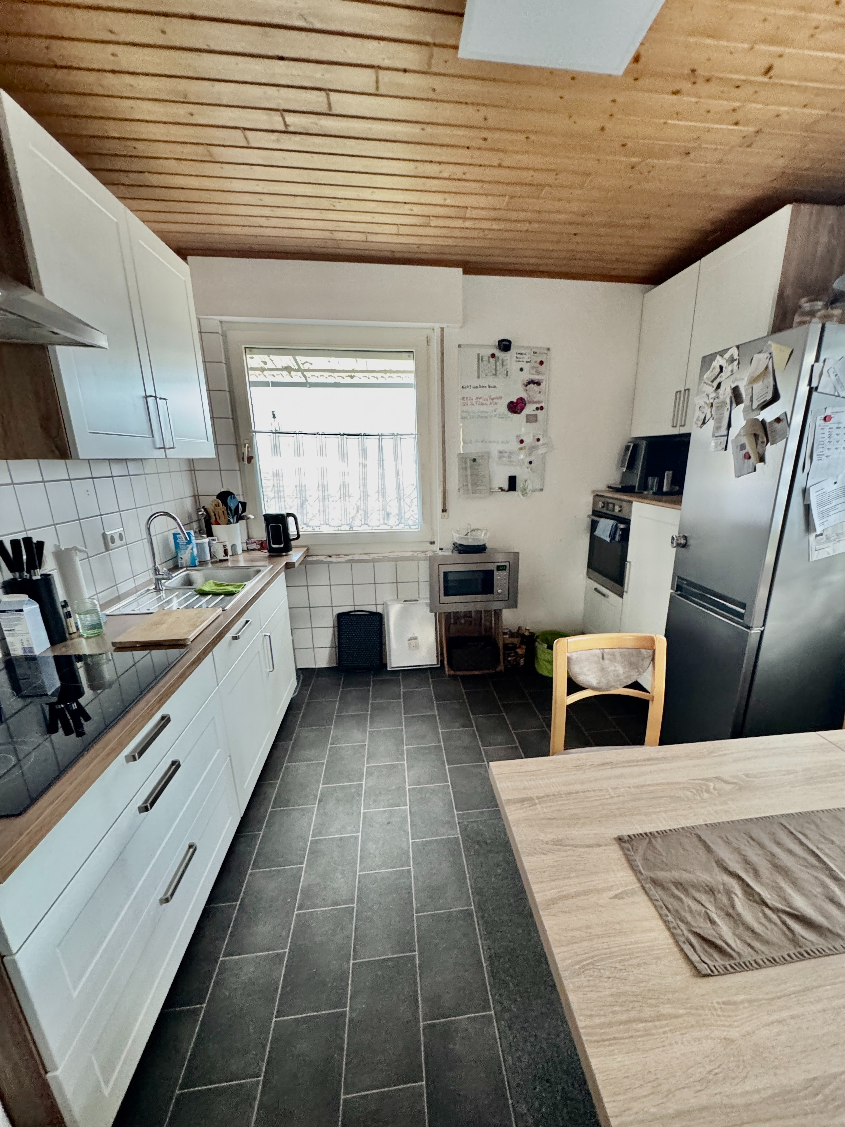 Im Inneren bietet das Haus eine Struktur, die sich gut an verschiedene Lebensphasen anpassen lässt. Im Erdgeschoss befindet sich ein offener Wohn-/Ess- und Küchenbereich – das Herz des Hauses, wo gekocht, geredet, gelebt wird. Ein weiteres Zimmer ergänzt diese Ebene flexibel, ob als Kinderzimmer, Gästezimmer, Büro oder Rückzugsort. Besonders schön: Das Duschbad wurde 2022 modernisiert. Das WC ist getrennt untergebracht – ein Detail, das den Alltag spürbar leichter macht.