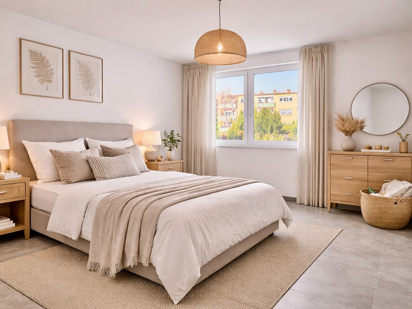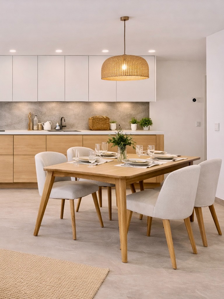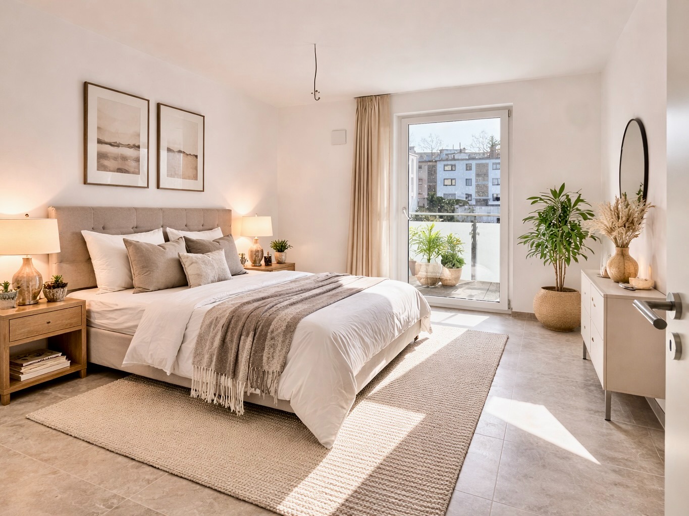 Auch bei der Ausstattung wurde konsequent auf Qualität gesetzt: Fußbodenheizung, effiziente Fernwärme, großformatige Fliesen (ca. 60 × 60 cm), Wände mit Malervlies, hochwertige Gira-Schalterserie sowie ein stilvolles Badkonzept – alles wirkt modern, klar und wertig.