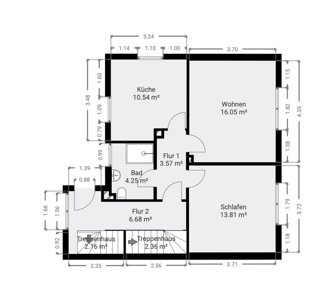 Im Erdgeschoss (WE 1, ca. 55 m²) warten 2 Zimmer, eine Wohnküche und das sanierte Duschbad mit bodengleicher Dusche – perfekt als großzügiger Familienbereich im Erdgeschoss, als Home-Office mit Gästebereich oder als separate Einheit für ein Familienmitglied.
