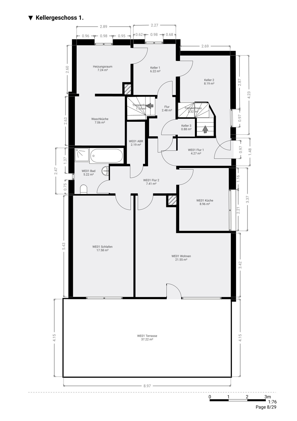 Im Kellergeschoss befinden sich klassische Nutz- und Vorratsräume, die Gas-Heizung (2009) sowie der Anschluss für die Waschmaschine. Ein weiterer Tiefkeller schafft üppige Platzreserve.
