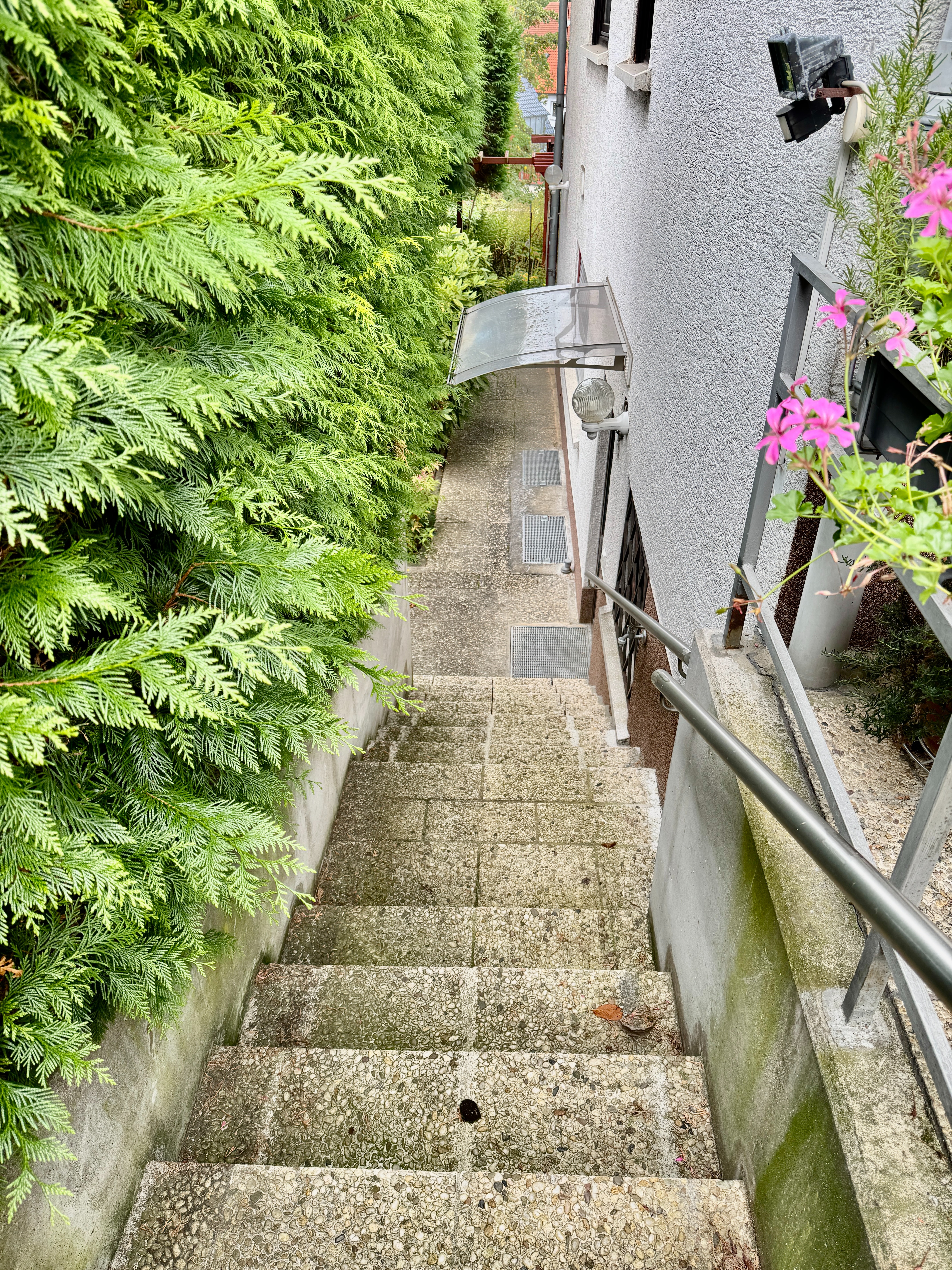 Diese einseitig angebaute Immobilie mit Einliegerwohnung vereint solide Substanz, behagliches Wohngefühl und eine Lage mit unverbaubarer Fernsicht. 1976 in massiver Bauweise errichtet und fortlaufend gepflegt, bietet die Immobilie heute zwei in sich stimmige Wohneinheiten – ideal für Mehrgenerationen, Wohnen & Arbeiten unter einem Dach oder als Kombination aus Selbstnutzung und Vermietung. Der terrassierte Garten folgt der Hanglage und öffnet den Blick weit über die Umgebung; die Nähe zum Krankenhaus unterstreicht die begehrte Wohnlage.