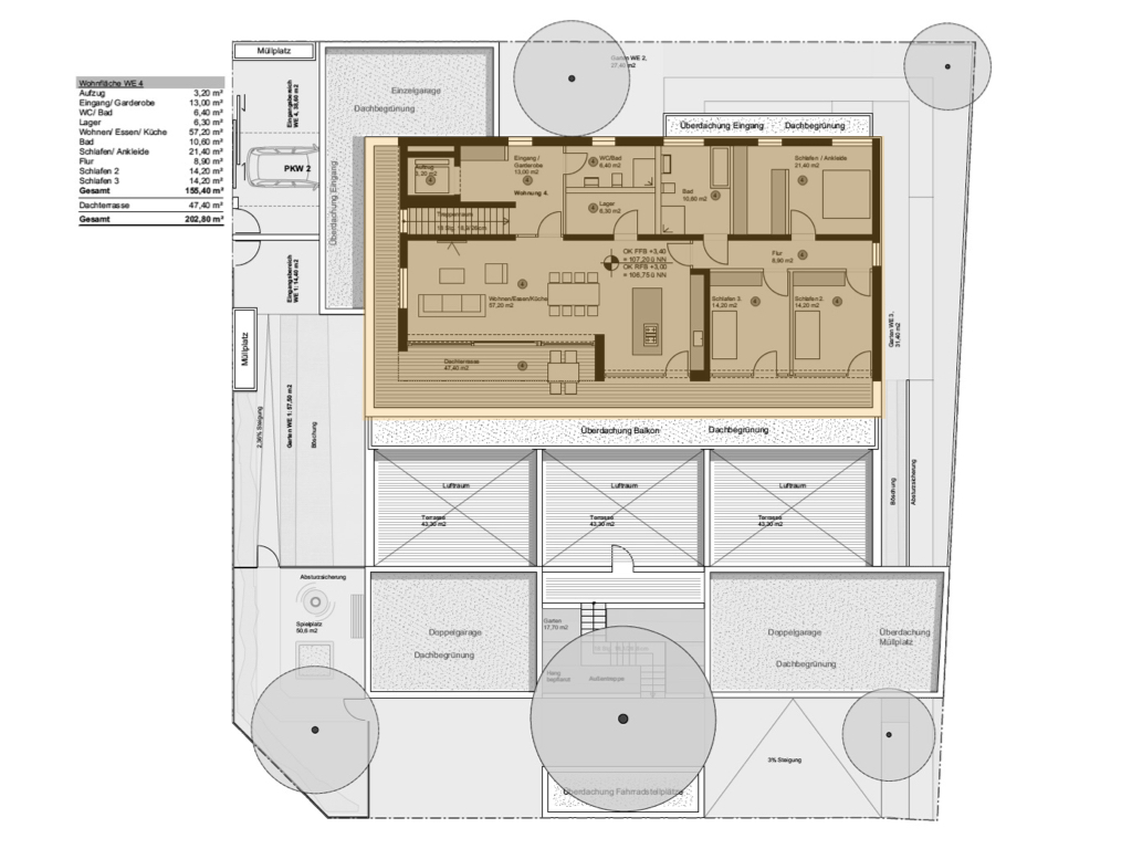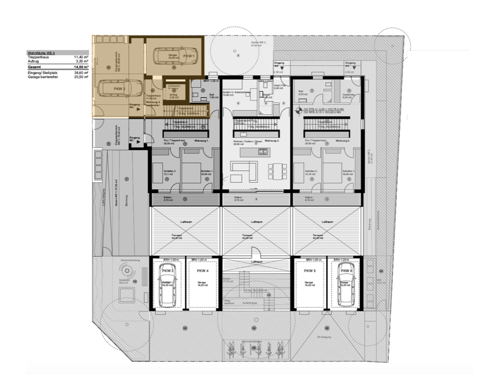 Auf rund 193,7 m² entfaltet sich großzügiges Wohnen mit einer ca. 47 m² großen, teilweise überdachten Dachterrasse – Ihr zweites Wohnzimmer unter freiem Himmel, perfekt für lange Sommerabende und ruhige Morgen mit Kaffee und Weitblick. Der separate, ebenerdige Eingang führt Sie komfortabel ins 1. Obergeschoss – wahlweise über Ihren Aufzug oder eine elegante Treppe.