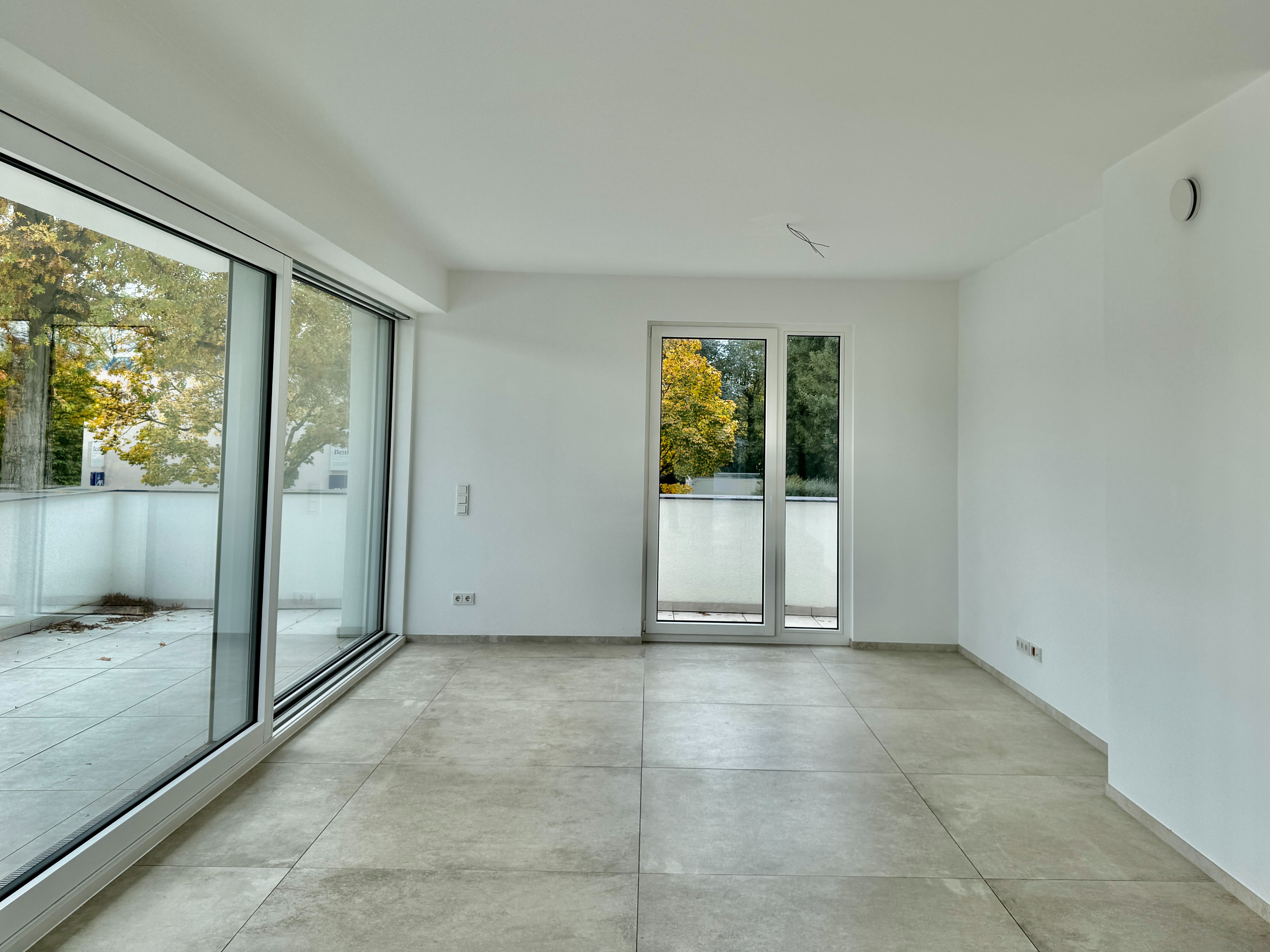 Drinnen empfängt Sie ein repräsentatives Entrée. Eine Glastür öffnet den Blick auf das Herzstück der Wohnung: den ca. 57 m² großen Wohn-/Ess-/Küchenbereich – offen, lichtdurchflutet, wie gemacht für gesellige Runden und stille Momente. Der Master Bedroom mit angrenzender Ankleide, zwei weitere gleich große Zimmer, zwei Bäder sowie ein Hauswirtschaftsraum erfüllen moderne Wohnwünsche mit Leichtigkeit.