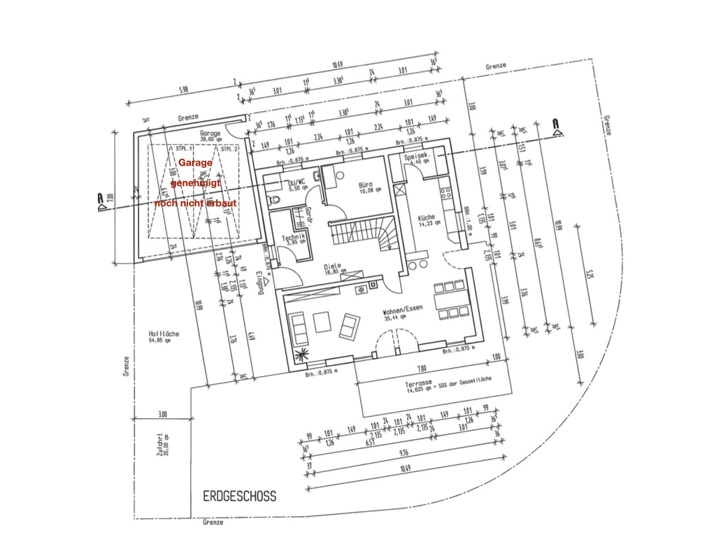 – Doppelgarage genehmigt, aber noch nicht erbaut
