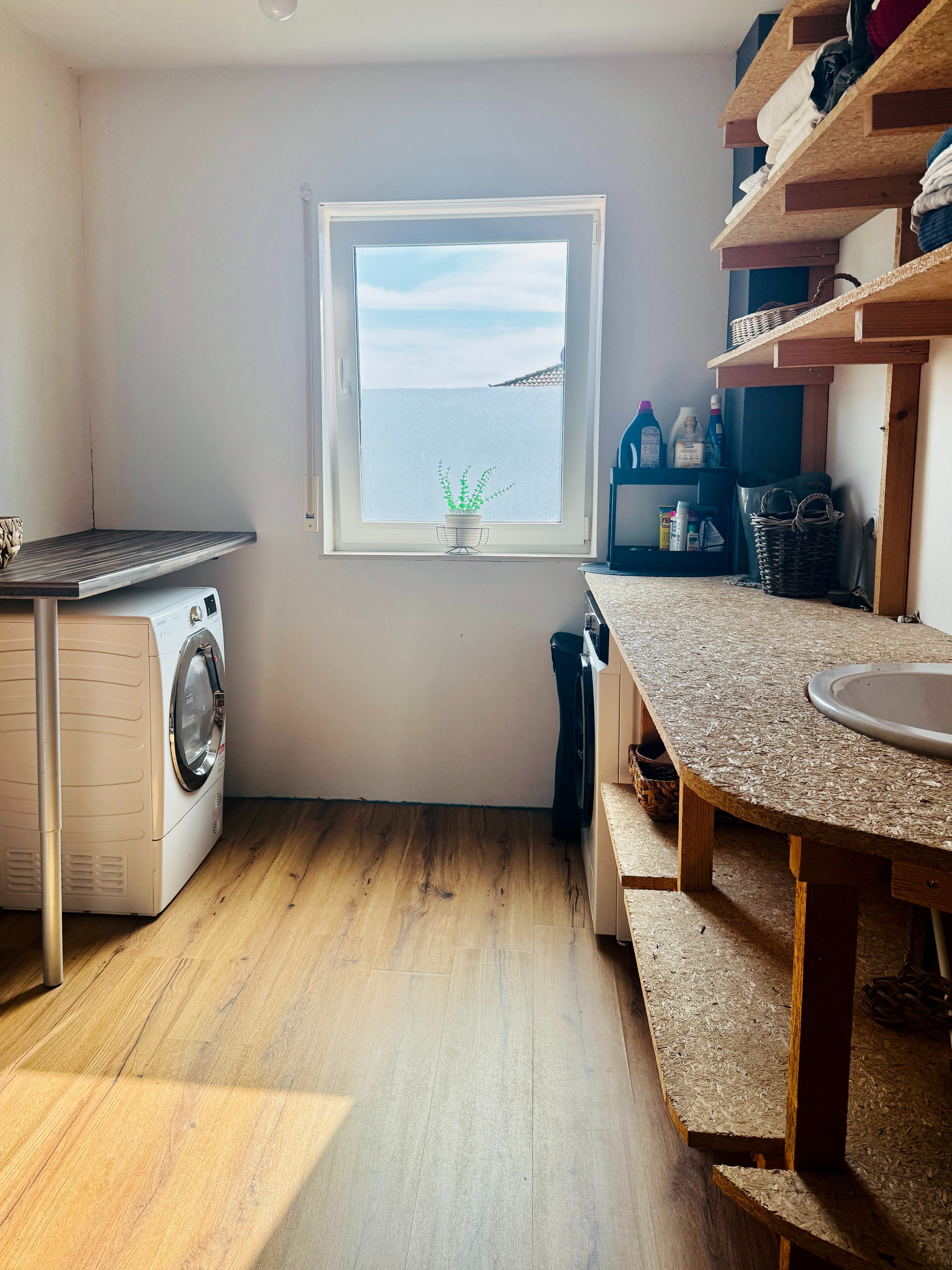 Besonders angenehm im Alltag: Neben einem weiteren kleinen Abstellraum gibt es einen Hauswirtschaftsraum im Obergeschoss – Wäsche bleibt dort, wo sie anfällt, und muss nicht durch das ganze Haus getragen werden. Genau diese Details machen ein Zuhause langfristig „leicht“.