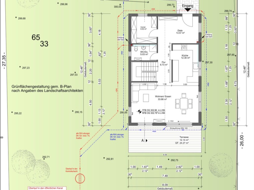 Die Außenanlage und die beiden genehmigten Pkw-Stellplätze sind vom Käufer herzustellen; verkauft wird im aktuellen Bautenstand. Der Verkauf erfolgt aus gesundheitlichen Gründen noch vor Einzug!