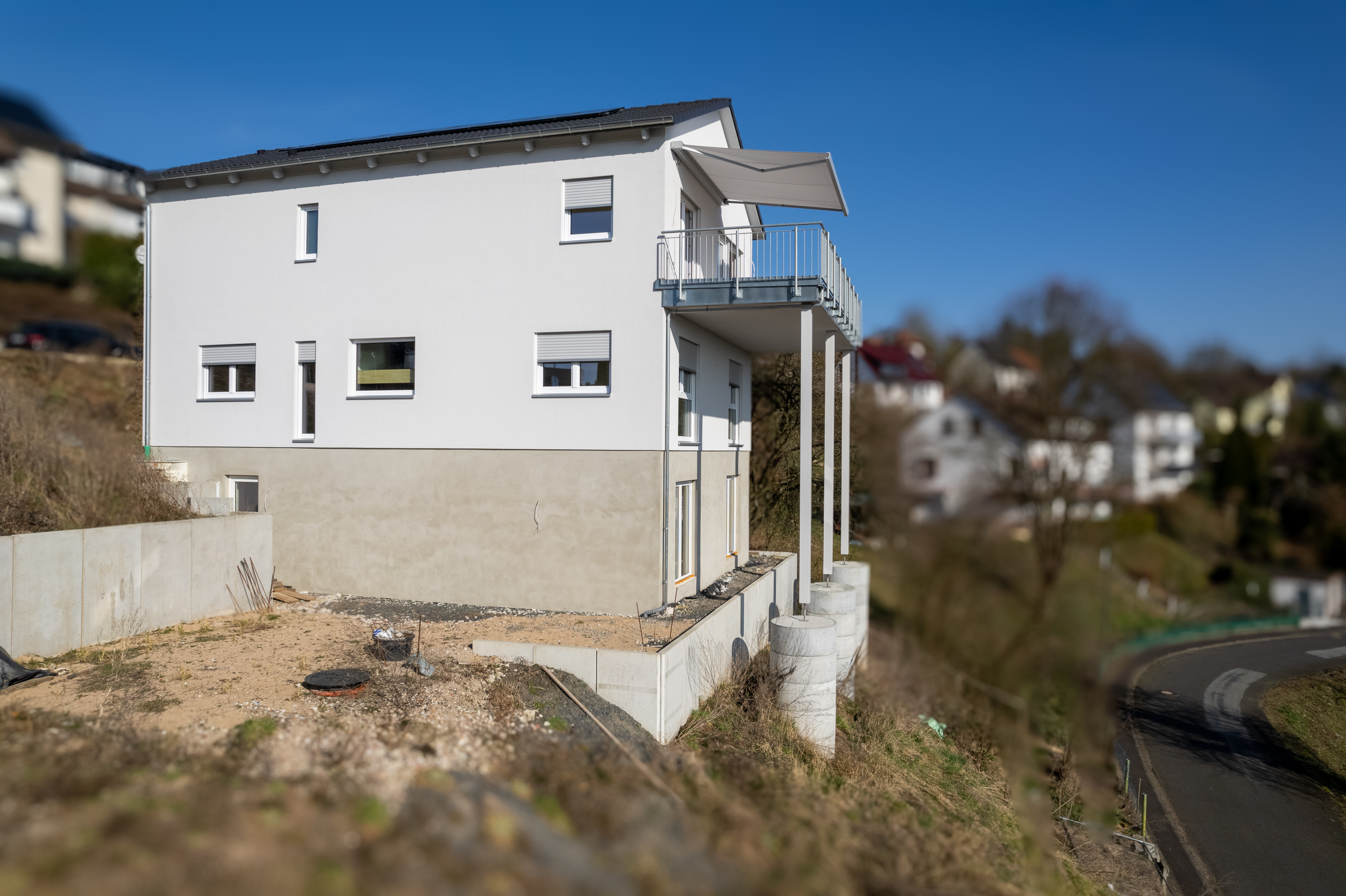 Die Außenanlage und die beiden genehmigten Pkw-Stellplätze sind vom Käufer herzustellen; verkauft wird im aktuellen Bautenstand. Der Verkauf erfolgt aus gesundheitlichen Gründen noch vor Einzug!