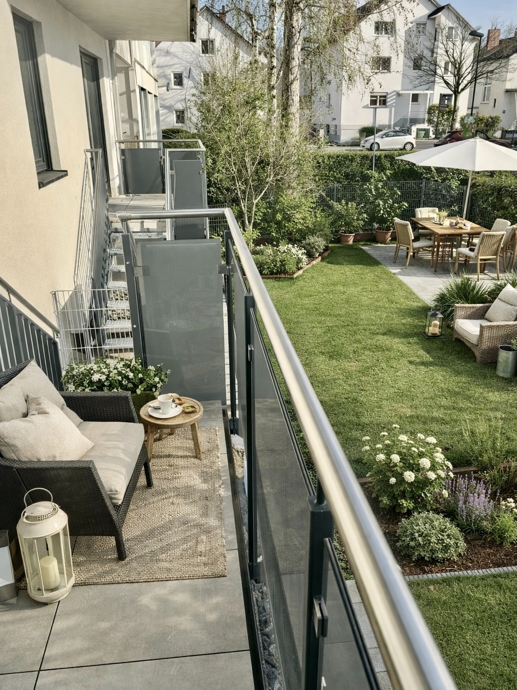 Der Südbalkon erweitert den Wohnraum nach draußen – ideal für den Morgenkaffee oder den Feierabend an der frischen Luft. Zusätzlich verfügt die Erdgeschosswohnung über einen eigenen kleinen Gartenanteil (ca. 33,5 m²), der das Wohnen im Grünen besonders charmant macht.
