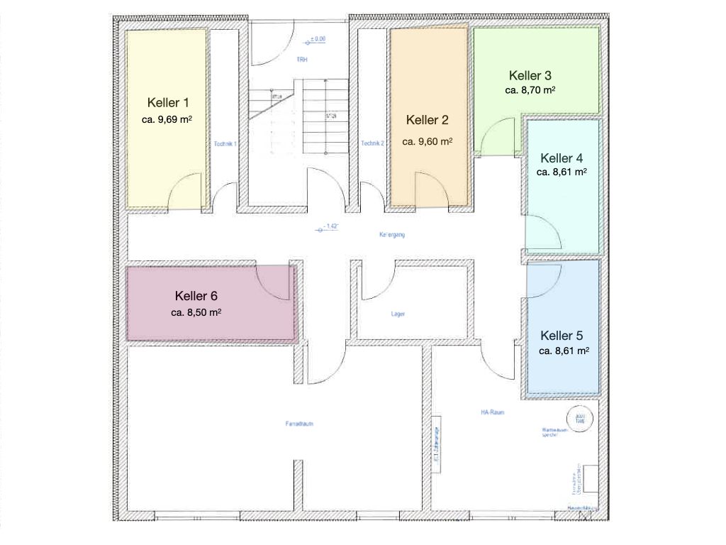 Zur Wohnung gehört außerdem ein zugeordneter Kellerbereich sowie der Zugang zum Fahrradkeller.