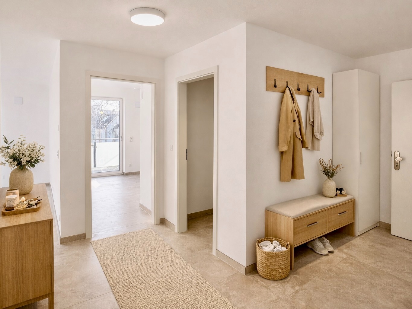 Der zentral gelegene Flur verbindet alle Bereiche harmonisch und schafft eine angenehme Struktur.
