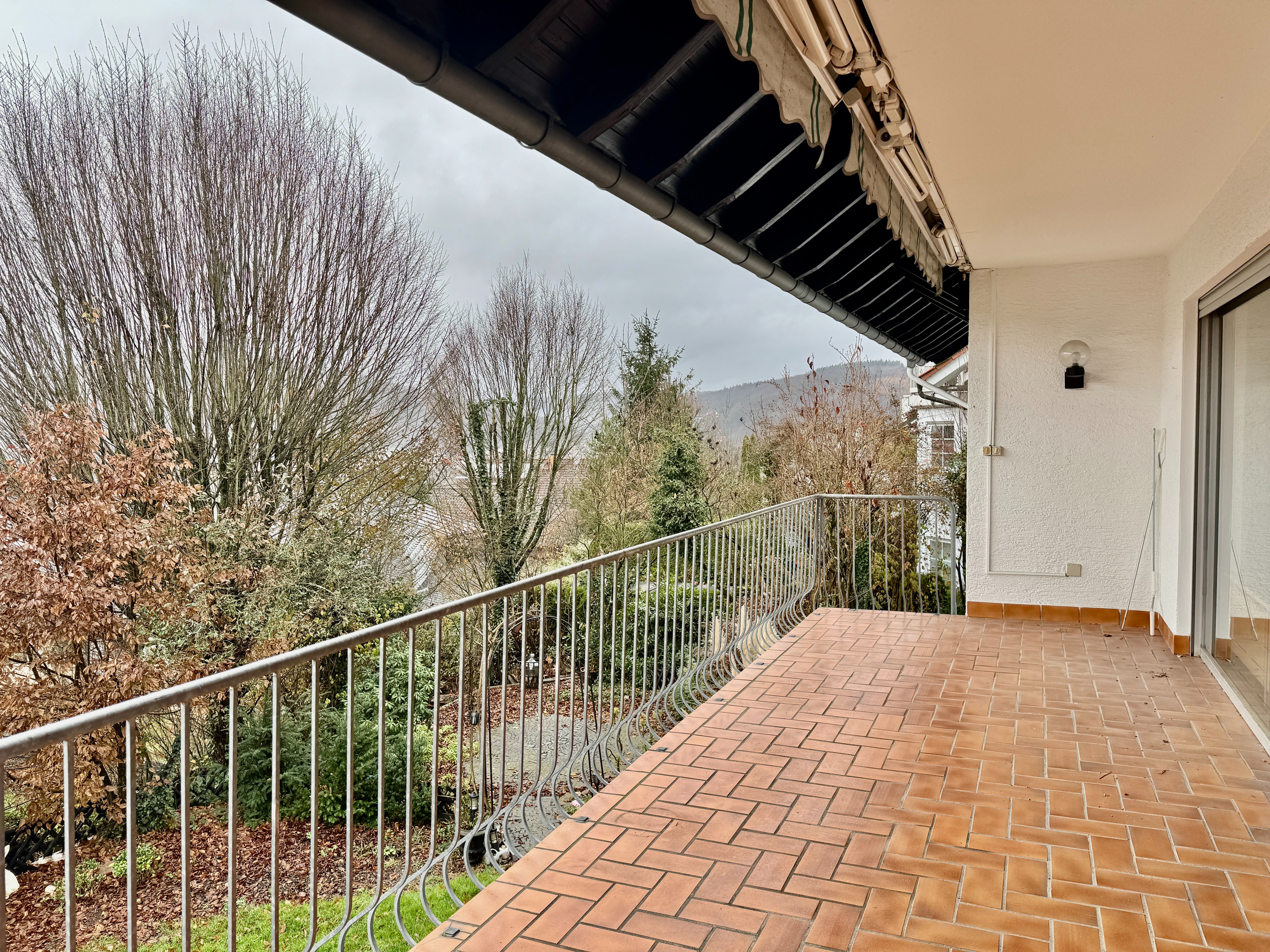 Gartenseite liegt tiefer, Balkon hat Wendeltreppe in den Garten (eine Etage Höhenunterschied)