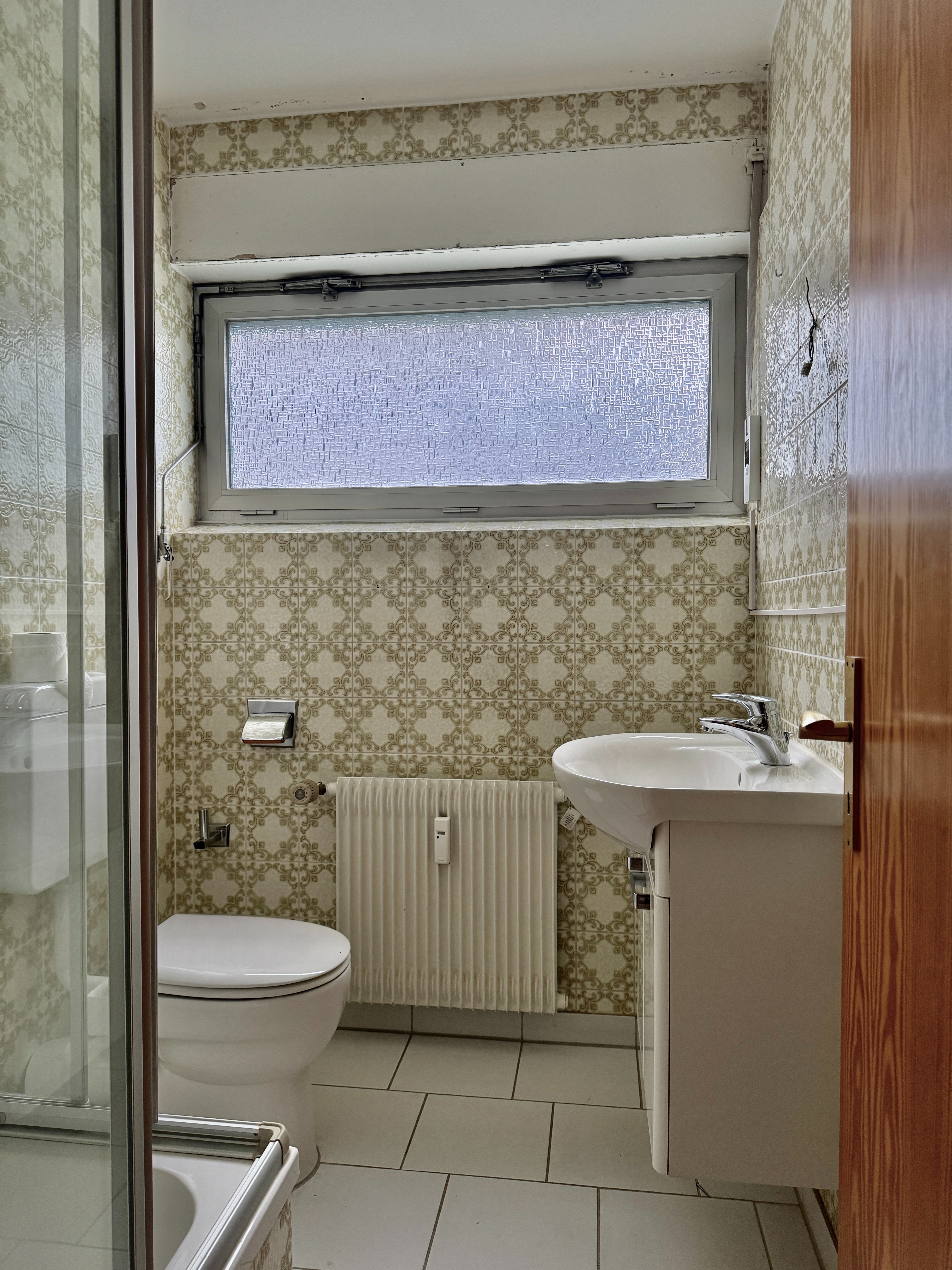 Es stehen zwei Badezimmer zur Verfügung: ein Tageslicht-Duschbad sowie ein Tageslicht-Wannenbad. Im Wannenbad findet auch die Waschmaschine ihren Platz. Die gemeinschaftlich genutzte Waschküche im Kellergeschoss kann alternativ ebenfalls genutzt werden. Entscheiden Sie selbst. Zusätzlich gibt es ein separates Gäste-WC. Diese Aufteilung ist besonders angenehm für Mehrpersonenhaushalte oder für Wohnen und Homeoffice.